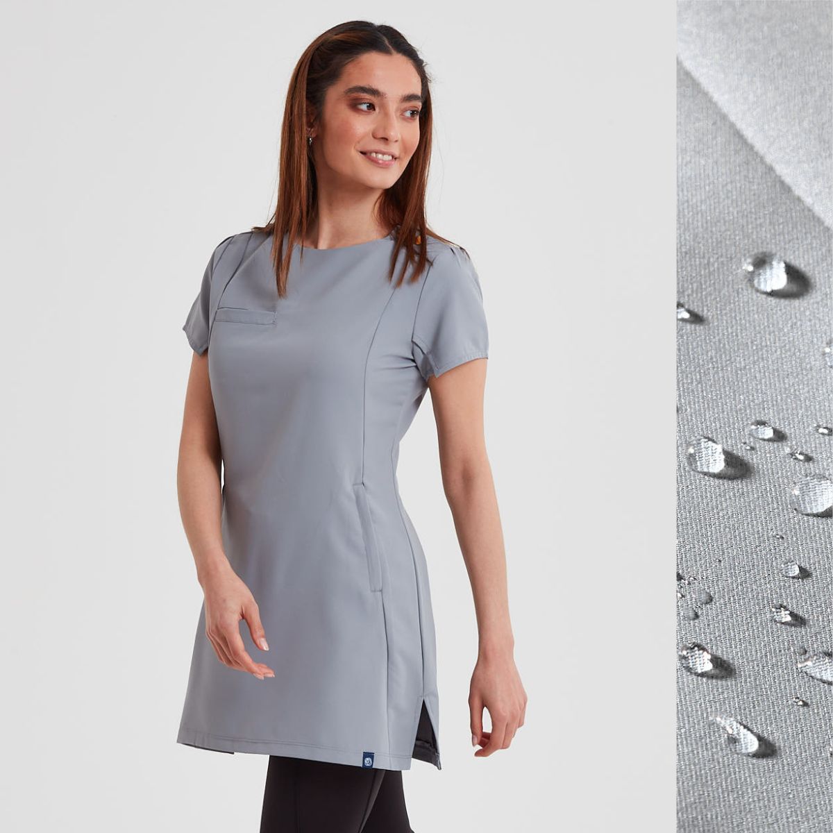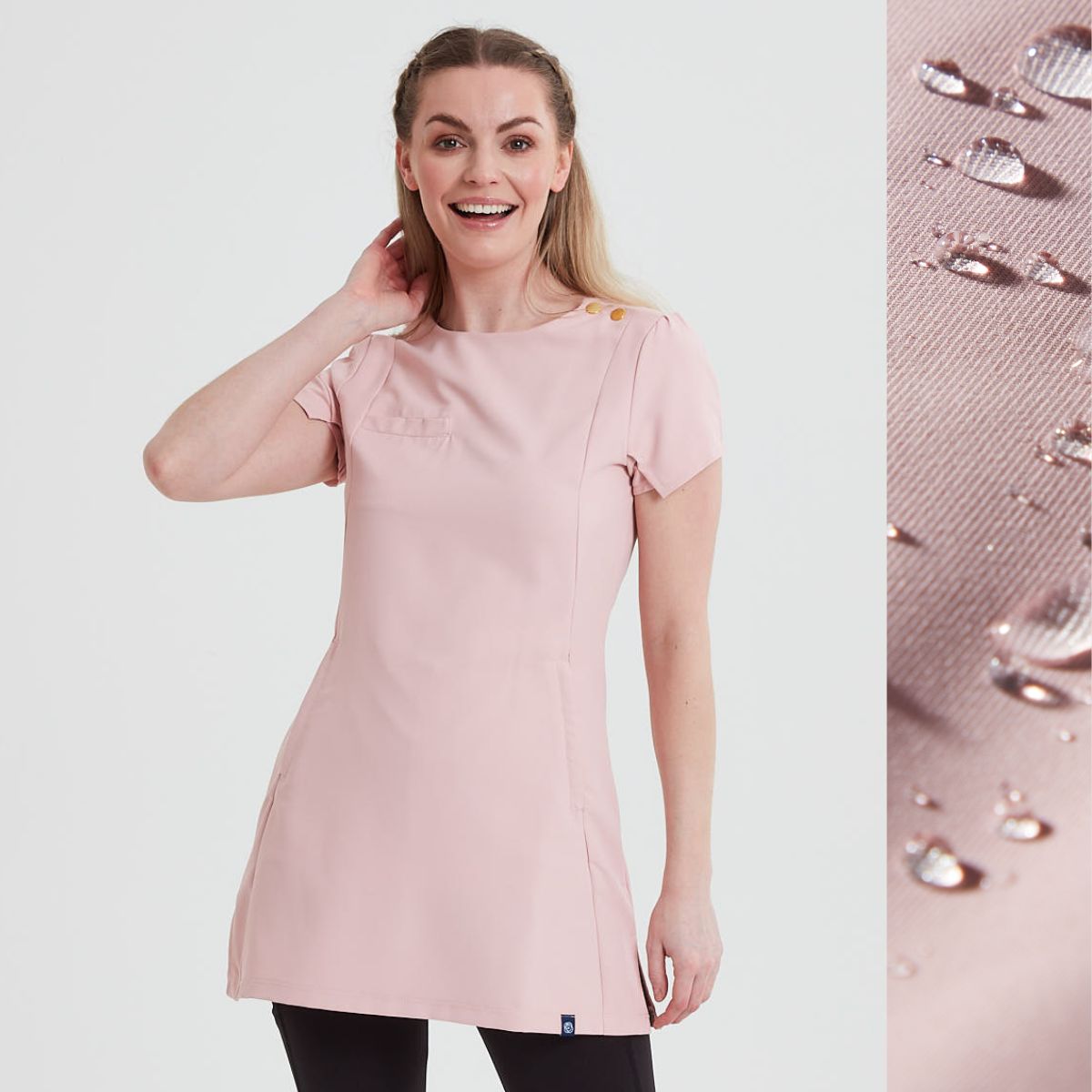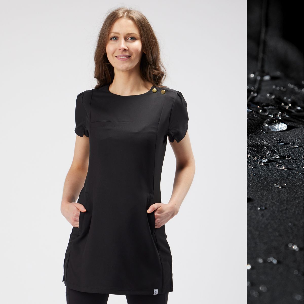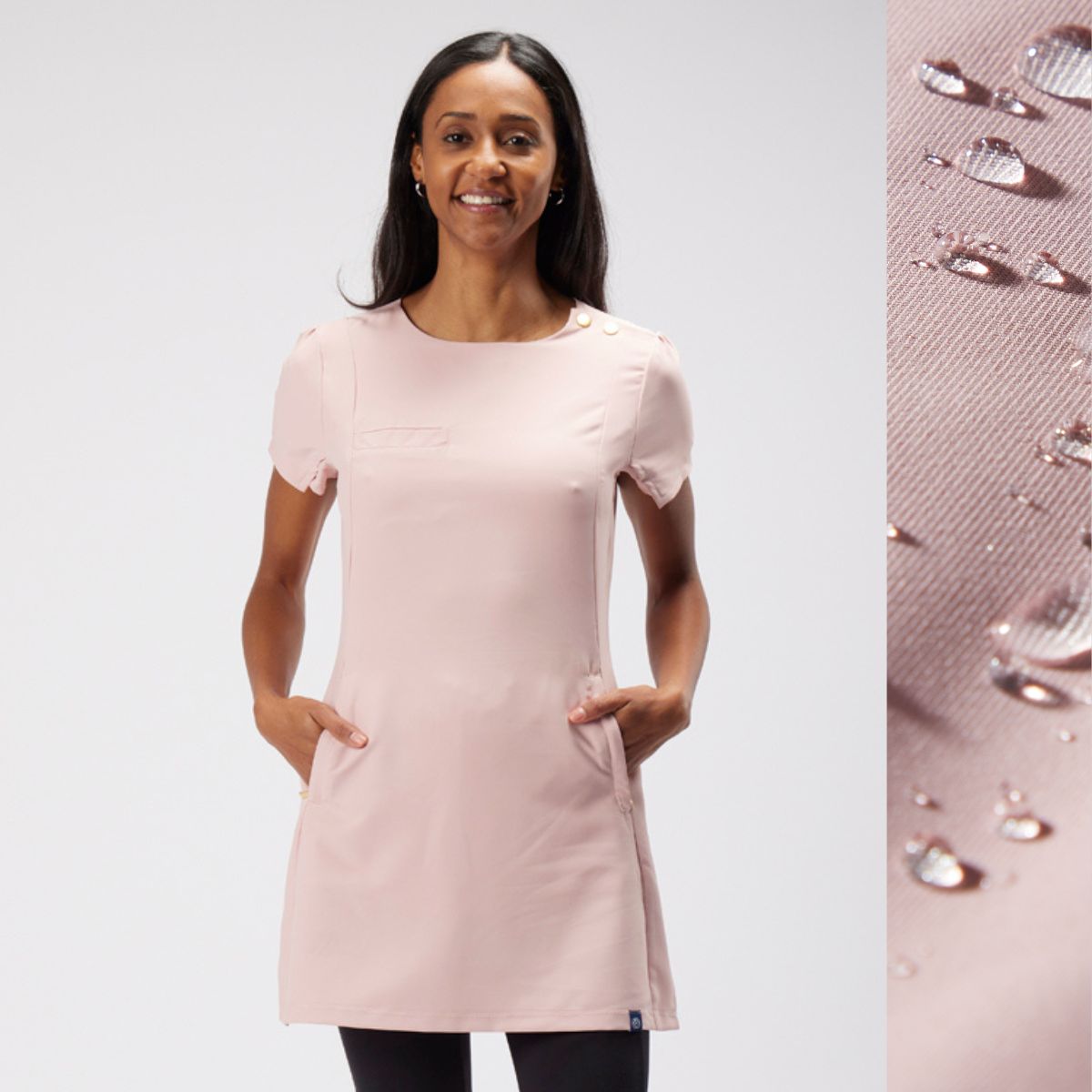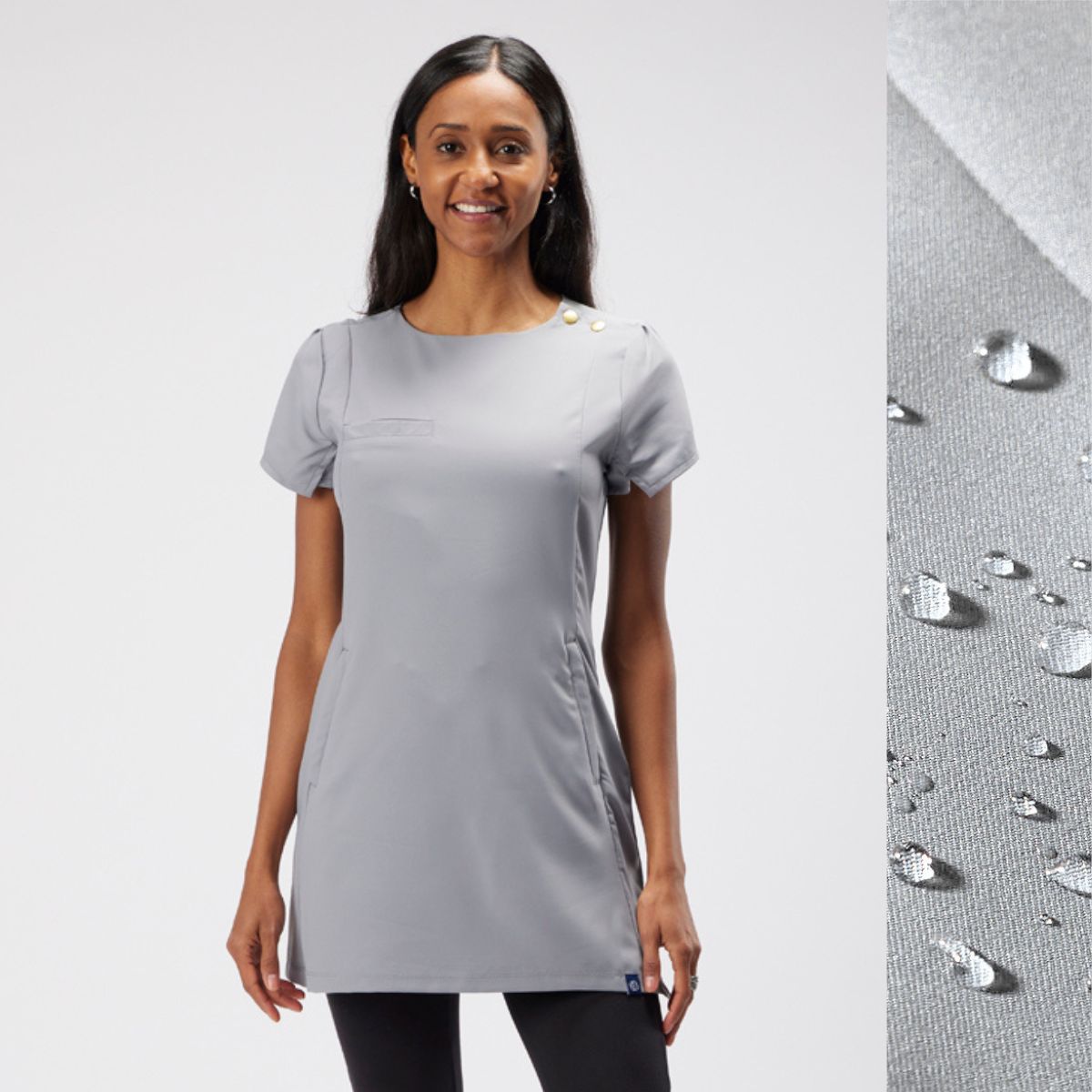 This trendy yet professional beauty tunic, designed to be durable and practical while also flattering and super comfortable to wear all day long. The perfect balance of style of function, suitable for any environment. The hair and water resistant fabric makes this beauty salon tunic ideal for anything your work day has in store.